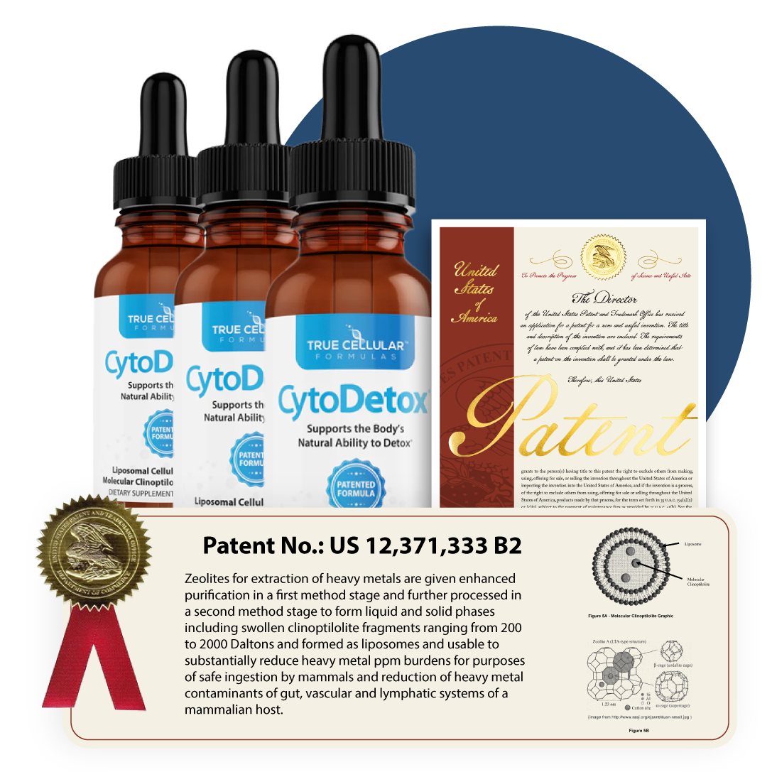 We do not just claim it, we did the work to Patent it through years of research and millions of dollars. When our physicians and customers use CytoDetox they can be certain they are investing into their health and the prevention of life altering symptoms.